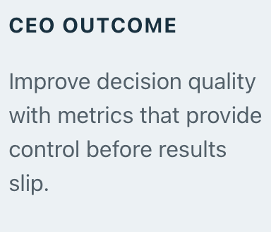 Most organizations track activity. Very few measure effectiveness. We establish the metrics and operating visibility needed to manage performance proactively.